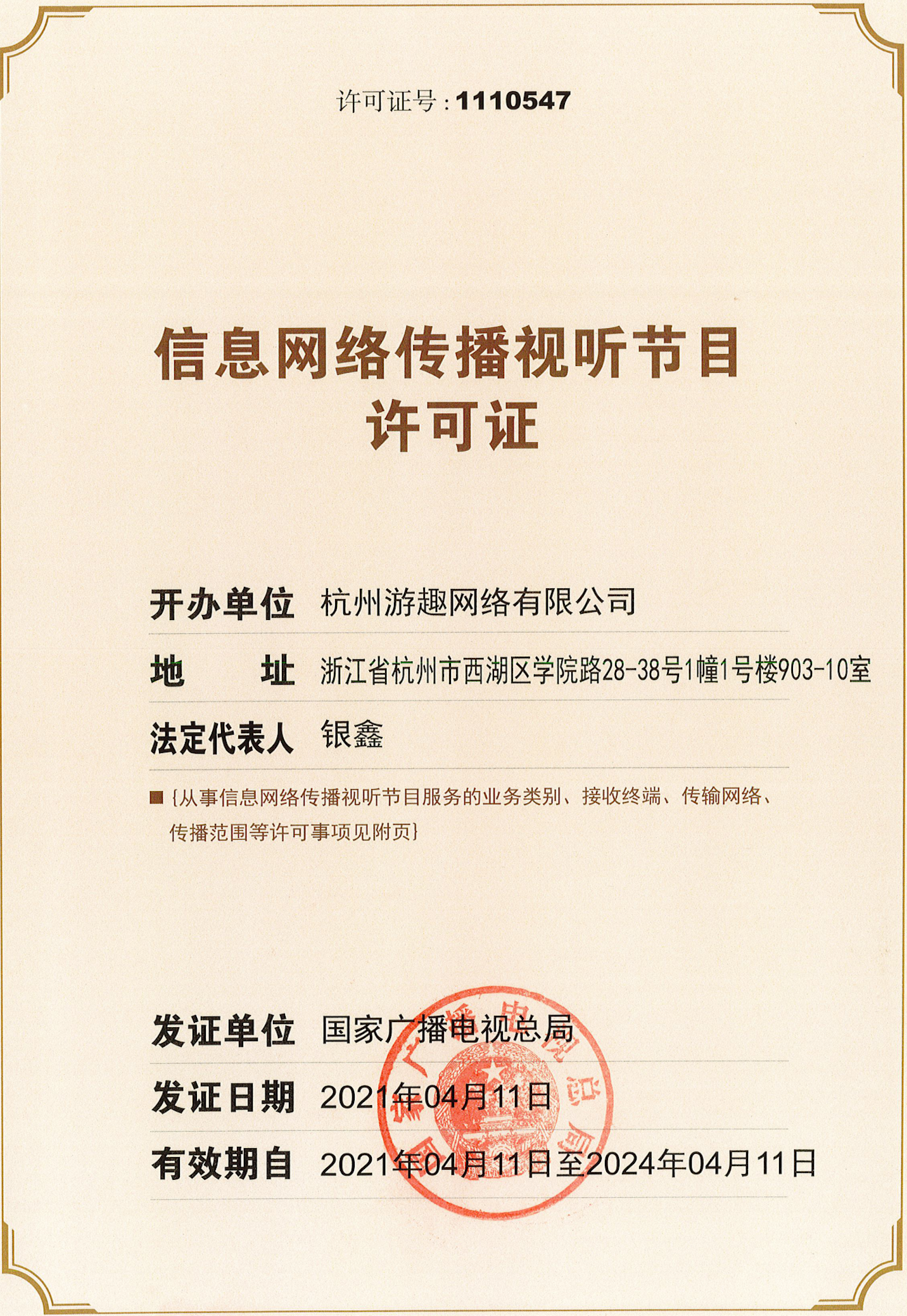 • 网络视听许可证1110547号 | 广播电视节目制作许可证(浙)字00870号